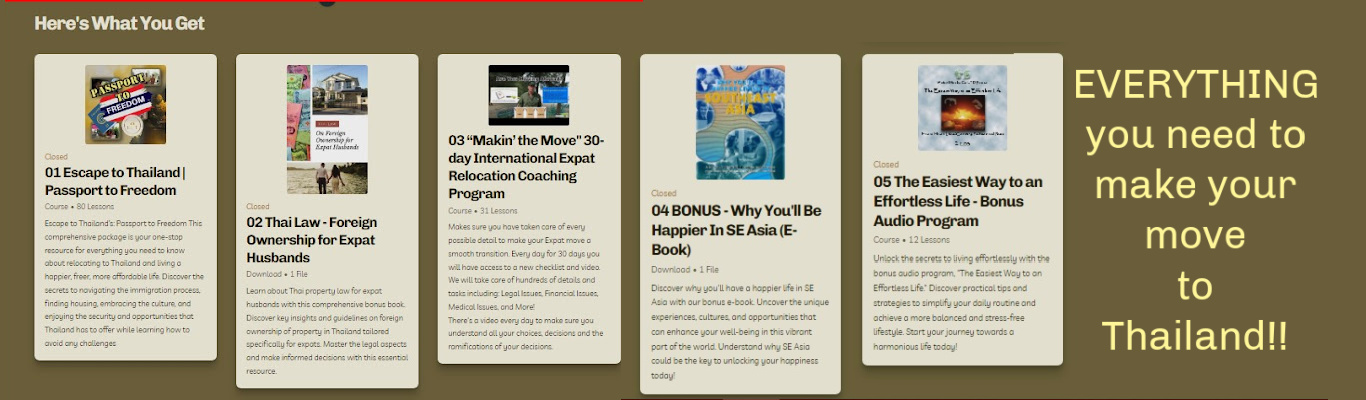 In our previous member site I helped thousands of people like you make a smooth transition to a higher quality of life in Thailand.